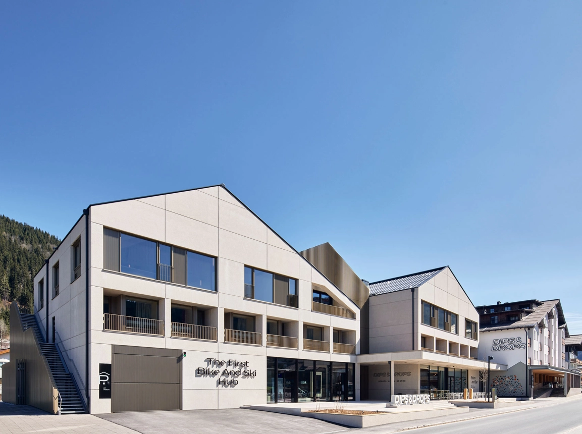 Neben den Gästen standen auch die Mitarbeitenden im Fokus: Die Modernisierung der Mitarbeiterräume, Brandschutzmaßnahmen und eine zukunftsfähige Haustechnik waren Teil der umfassenden Sanierung des Bestands. Das Herzstück bildet der Bike- und Ski-Hub – eine zentrale Anlaufstelle mit Verleih, Reparaturwerkstatt und Community-Spaces, die den Charakter als „First Bike and Ski Hub“ unterstreichen.