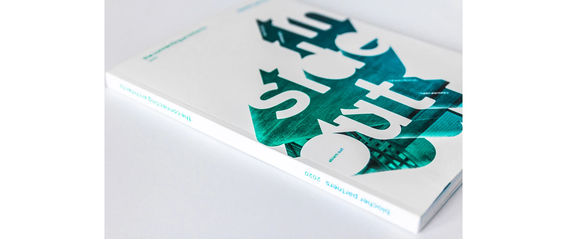 So ist dieses Buch ein sehr persönliches geworden. Eine Art Logbuch, das von unserer Reise in Zeiten des Lockdowns erzählt. Sie führt über einen Strategieprozess, mit dem wir unser Design in die Zukunft tragen möchten, über Projekte, die wir dennoch fertigstellen oder sogar beginnen konnten, und sie führt uns zum Thema der Nachhaltigkeit. Ein Wert, den wir nicht erst seit diesem Jahr leben, dessen Bedeutung uns dieser Tage aber umso mehr bewusst wurde. Sind wir mit Farbe, Papier und Druck in jeglicher Hinsicht auf Natur und Nachhaltigkeit eingegangen, bringt die Gestaltung des Buchs, seine Grafik und Typographie, das Thema der Transparenz und Einsicht zum Ausdruck – „Inside Out“ lautet darum auch der Titel.
