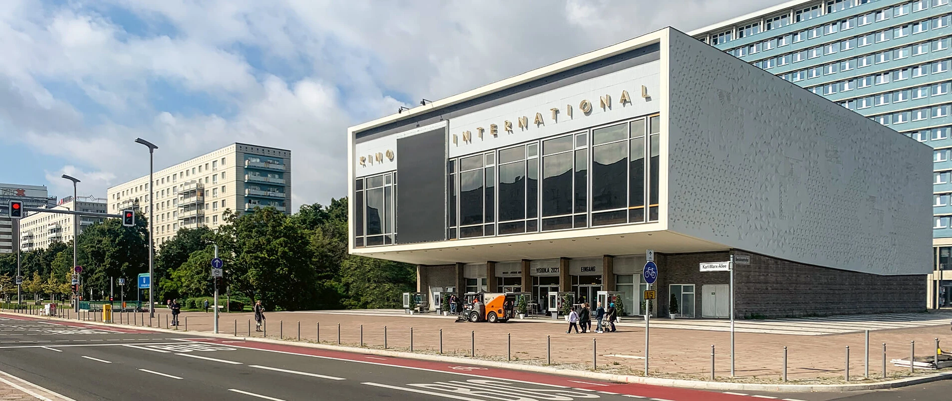 Durch eine denkmalgerechte Instandsetzung des Innenraums und einer Gesamtsanierung der Haustechnik wird der Charme des prominent an der Karl-Marx-Allee gelegenen markanten Baus aus den 60er Jahren behutsam sicht- und erlebbar gemacht.