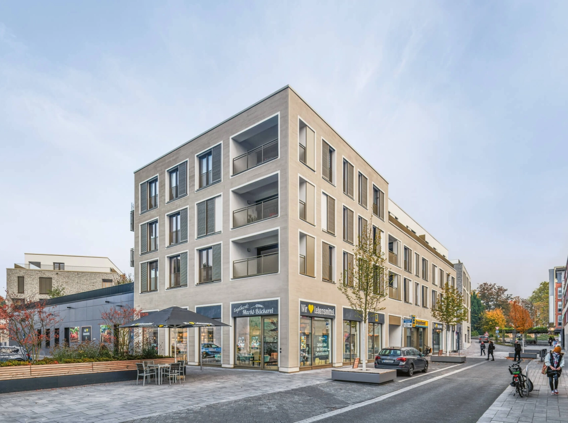 Nutzungen verdichten, das Leben in all seinen Facetten bedienen: Das Wohn- und Geschäftshaus mit einer Mischung aus 56 Wohnungen und Gewerbe schafft hochwertigen Lebensraum, der sich dabei mit einer differenziert gestalteten Fassade in die innerstädtischen Strukturen fügt.