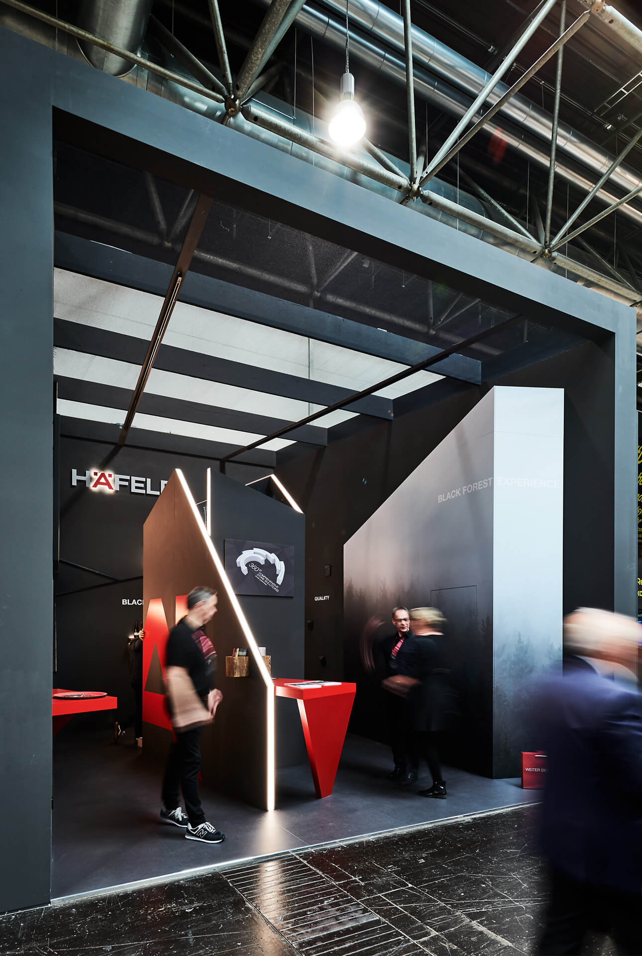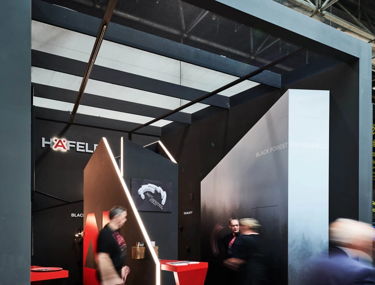 The internationally active manufacturer of hardware technology and electronic locking systems was an exhibitor at the EuroShop trade fair for the first time in 2020. For the trade show appearance, the interior designers created a 31-square-meter trade show booth that transfers Häfele's rootedness with the quality of its products into the space and creates a modernly interpreted Black Forest atmosphere in which visitors can learn about the Nagold-based company's product range. At the German Brand Award 2021, the trade show booth was honored in the category Brand Communication - Brand Events, Fairs and Exhibitions.