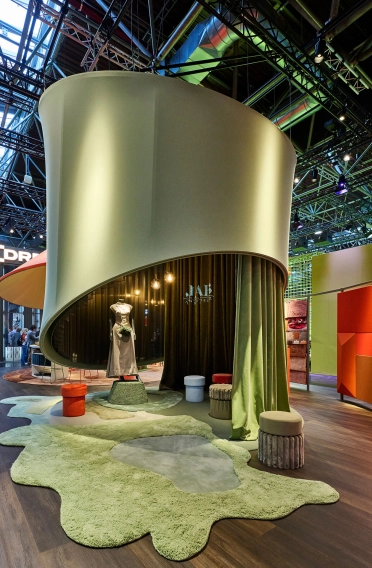 »Unser Designansatz zielte darauf ab, die Vielseitigkeit und die außergewöhnliche Haptik der Produkte von JAB ANSTOETZ in den Vordergrund zu stellen und gleichzeitig einen Raum zu schaffen, der zu Entdeckungen und Gesprächen einlädt«, erklärt Anja Pangerl, Partnerin bei blocher partners.