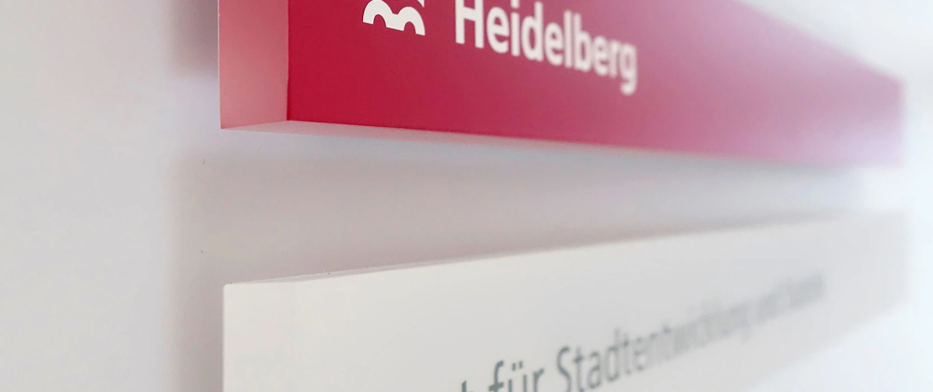 Dabei stand der hochsensible Umgang mit der historischen Substanz im Vordergrund. Auch für die Kommunikationsexperten von typenraum, die nicht nur die Maßnahmen in einer Baudokumentation festhielten, sondern auch für das Leitsystem verantwortlich zeichnen. Sie stellten sich der Herausforderung, ein für Amtsbauten essentiell wichtiges Orientierungssystem zu entwickeln, das zugleich die geschichtsträchtige Aura dieses Ortes respektiert. Die Lösung: ein zurückhaltendes, aber intuitiv erfassbares System aus modularen Elementen, die leicht skalierbar und austauschbar sind. Dezente Farbakzente in der Heidelberger CI-Farbe Heidelbeer runden das Leitsystem ab.