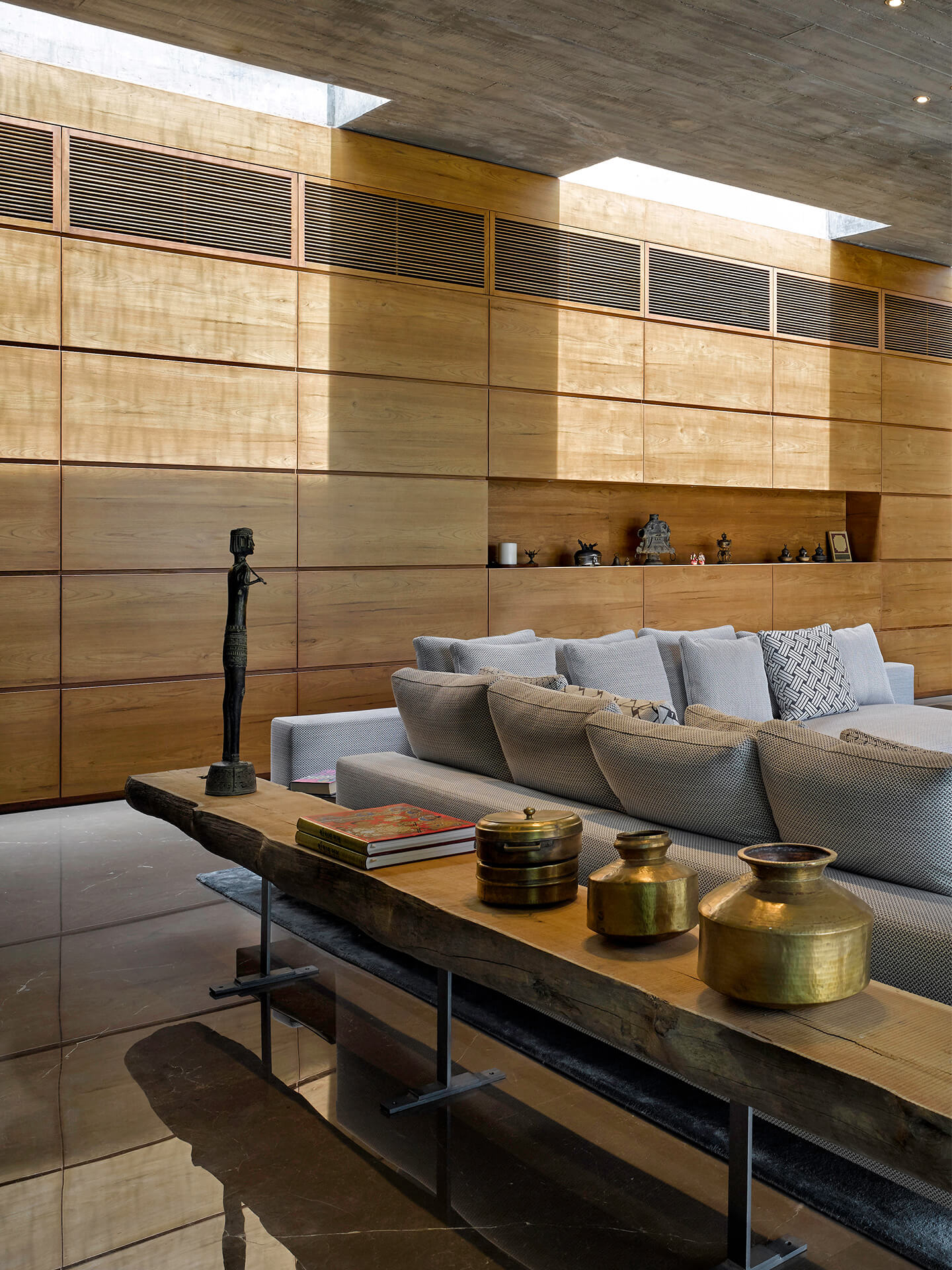 Die klaren, achtsamen Richtlinien Vaastu Shastras, das auch als „die Wissenschaft vom Wohnen“ übersetzt wird, sorgen dafür, dass sich die Bewohner trotz der beträchtlichen Größe des Hauses nicht verloren fühlen.
