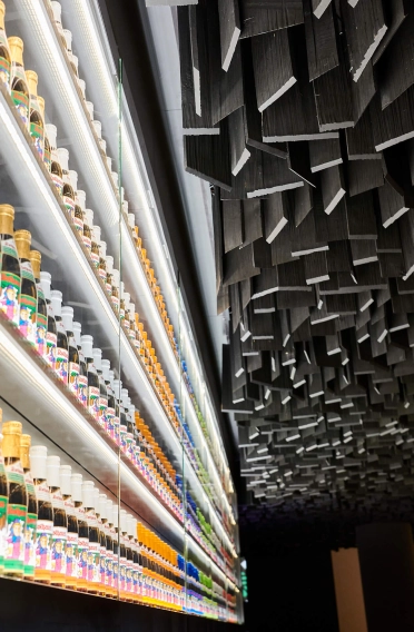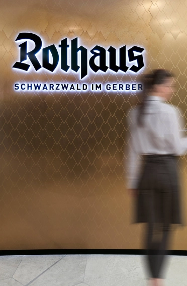 Das Kreativkonzept der Innenarchitekten knüpft an die Heimat von Rothaus an. Der Schwarzwald ist rau, dunkel und mystisch – gleichzeitig aber auch hell, ruhig und freundlich. Das Konzept greift diese Gegensätze auf und vereint sie mit Schwarzwälder Lebensräumen und handwerklicher Präzision.