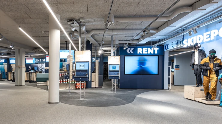 Bereits in dem Moment, in dem die Besucher über die Rolltreppen im Atrium in das vierte Geschoss gelangen, werden sie geradezu angezogen vom futuristischen Look – ein Spiel mit Alu- und Lochblechmaterialien, Granit und Plexiglas - der Sportabteilung. Sondermöbel, die die Highlightflächen markieren, gehen in ihrer Materialität wie Beispiel Zirbenholz und Verarbeitung stets eine Verbindung aus Kunst und lokalem Bezug ein.