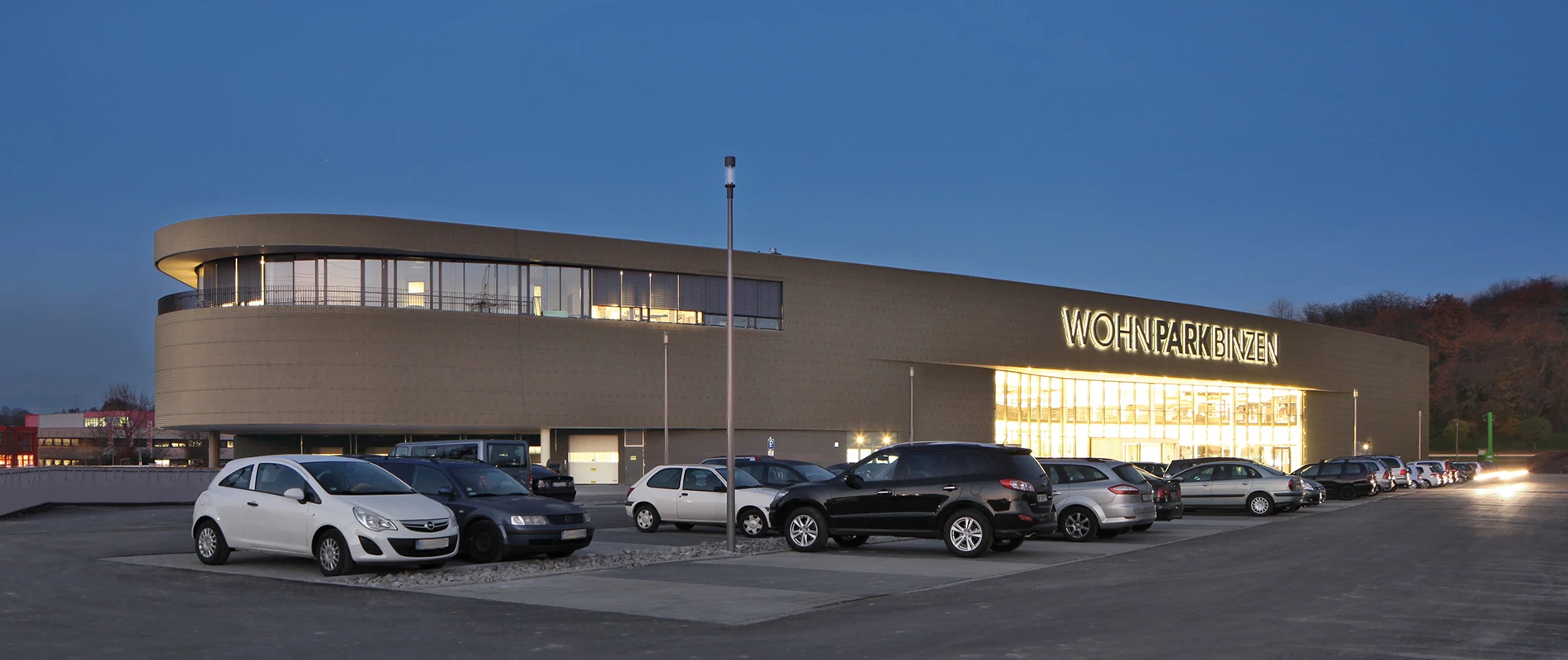 Neubau eines Möbelhauses nach DGNB-Zertifizierung inkl. Restaurant, Verwaltungsbereich und Außenanlagen — Konrad-Zuse-Straße 6, 79589 Binzen — 20.000 m² auf drei Geschossen — 2012 — Wohnpark Binzen/Mobilia Wohnbedarf KG