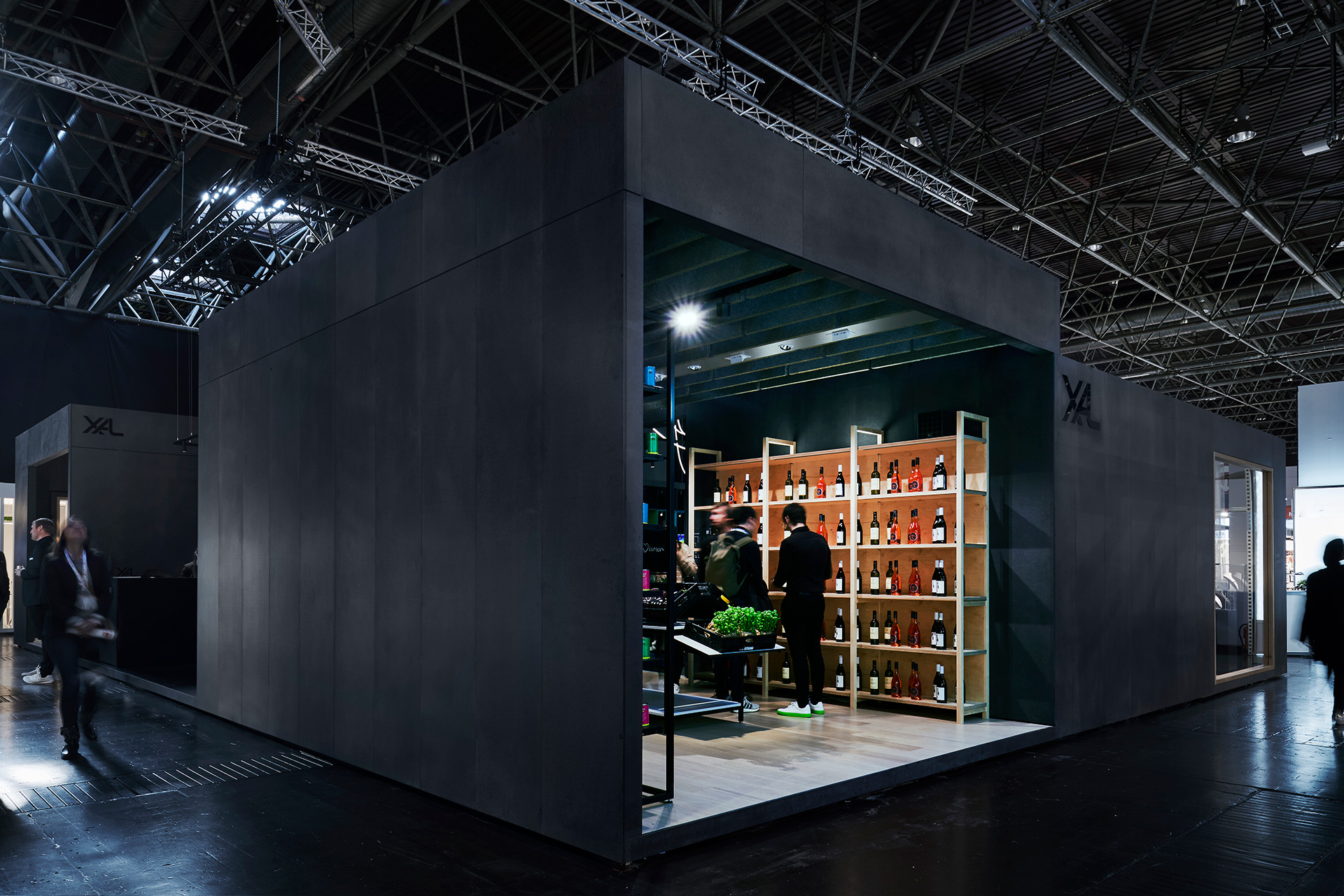 Angeordnet um einen zentralen Marktplatz befinden sich vier gebaute Welten als abstrakte Interpretation von Gebäuden im städtischen Kontext, die branchenspezifisch den Einsatz der XAL Produkte thematisieren. Auf diese Weise werden auf dem Messestand verschiedene Aspekte urbanen Lebens abgebildet: Inspiration, Handel, Gastronomie, soziale Interaktion und Austausch.